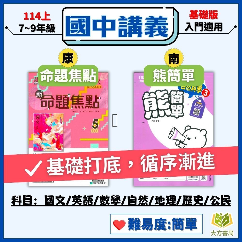 【新命題焦點/熊簡單】簡單講義 114上 國中7~9年級|國文/英語/數學/自然/地理/歷史/公民|康軒/南一|附解答