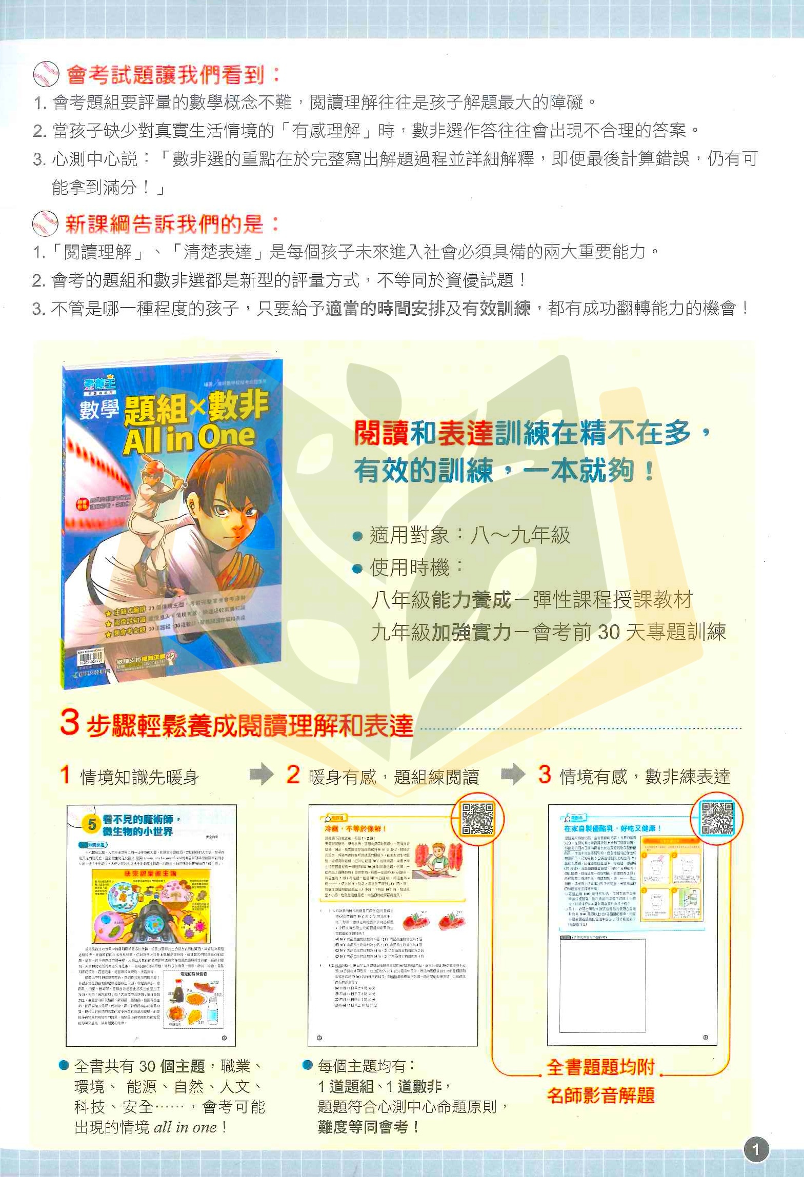 ▶ 30道題組+30道數非,聚焦閱讀理解與表達能力