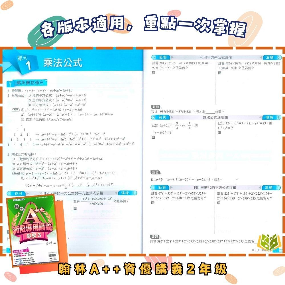 翰林國中【A++資優專用講義】綜合版 數學 進階講義 114上 114下 國中7~9年級|適用康軒/翰林/南一|附解答