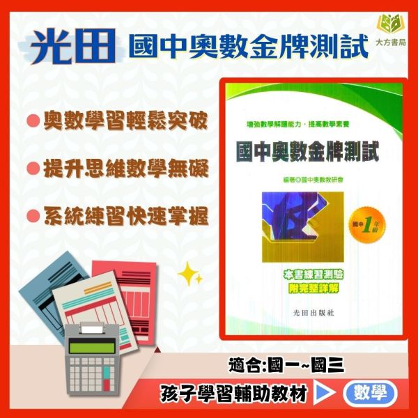 光田國中 國中奧數金牌測試1~3年級 附解答【國中數理輔材】