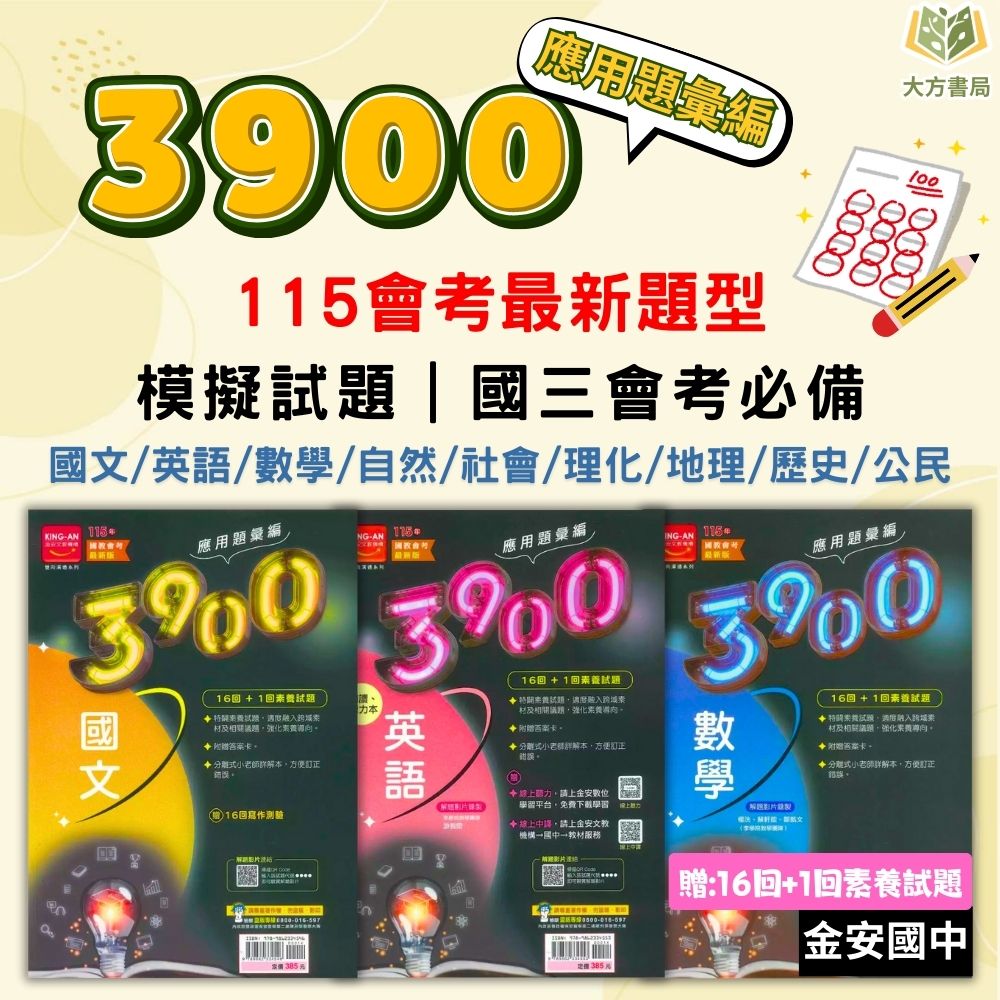 115國中會考 金安【3900】應用題彙編/五合一關鍵重點彙整|國文/英語/數學/自然/理化+地科/地理/歷史/公民/套書 附解答