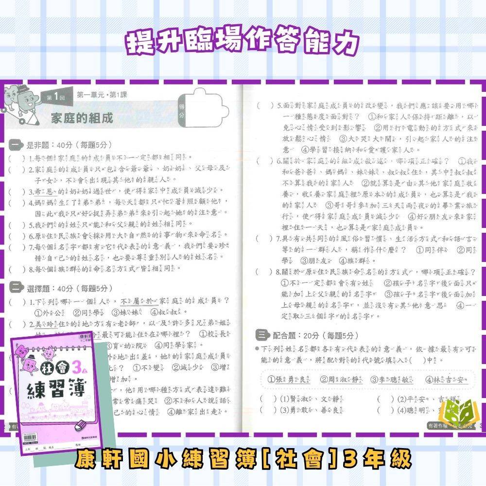 📗測驗卷:可撕一張一張,模擬學校試卷,適合考前複習,訓練學生掌握考試時間