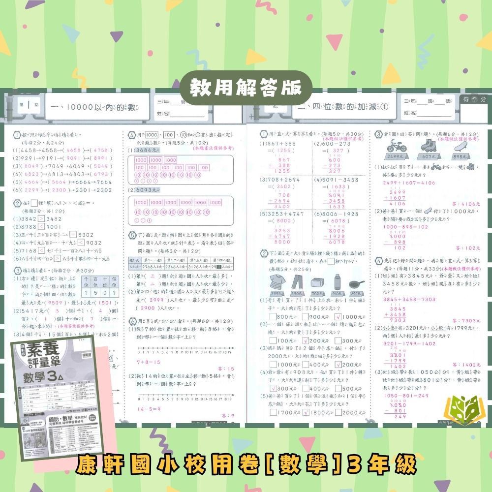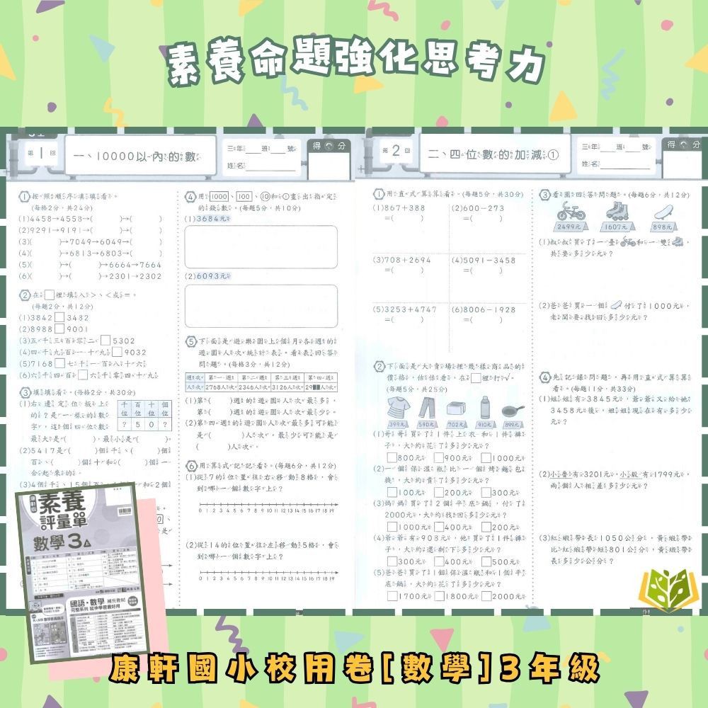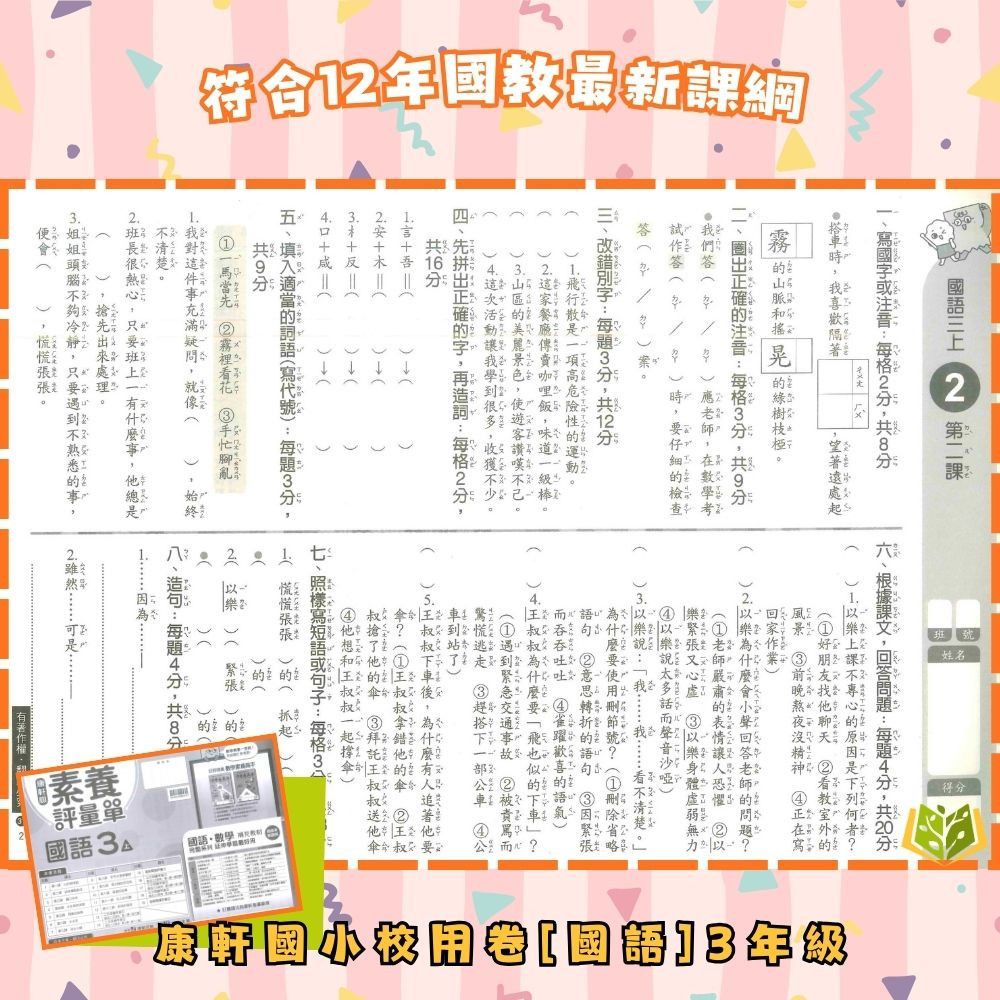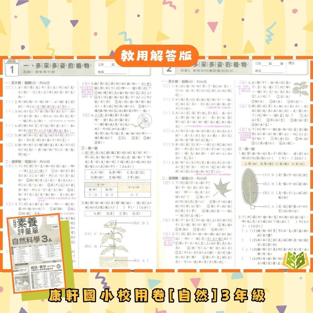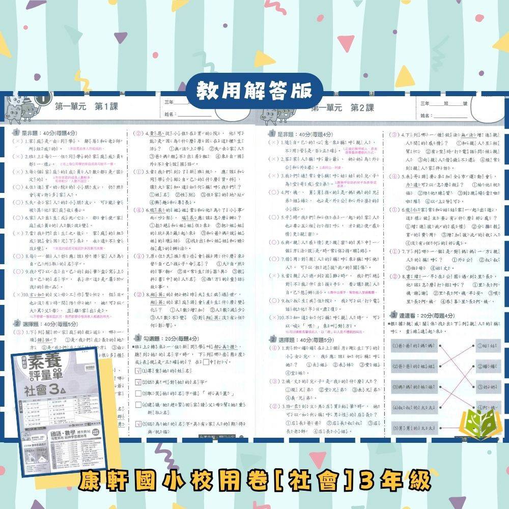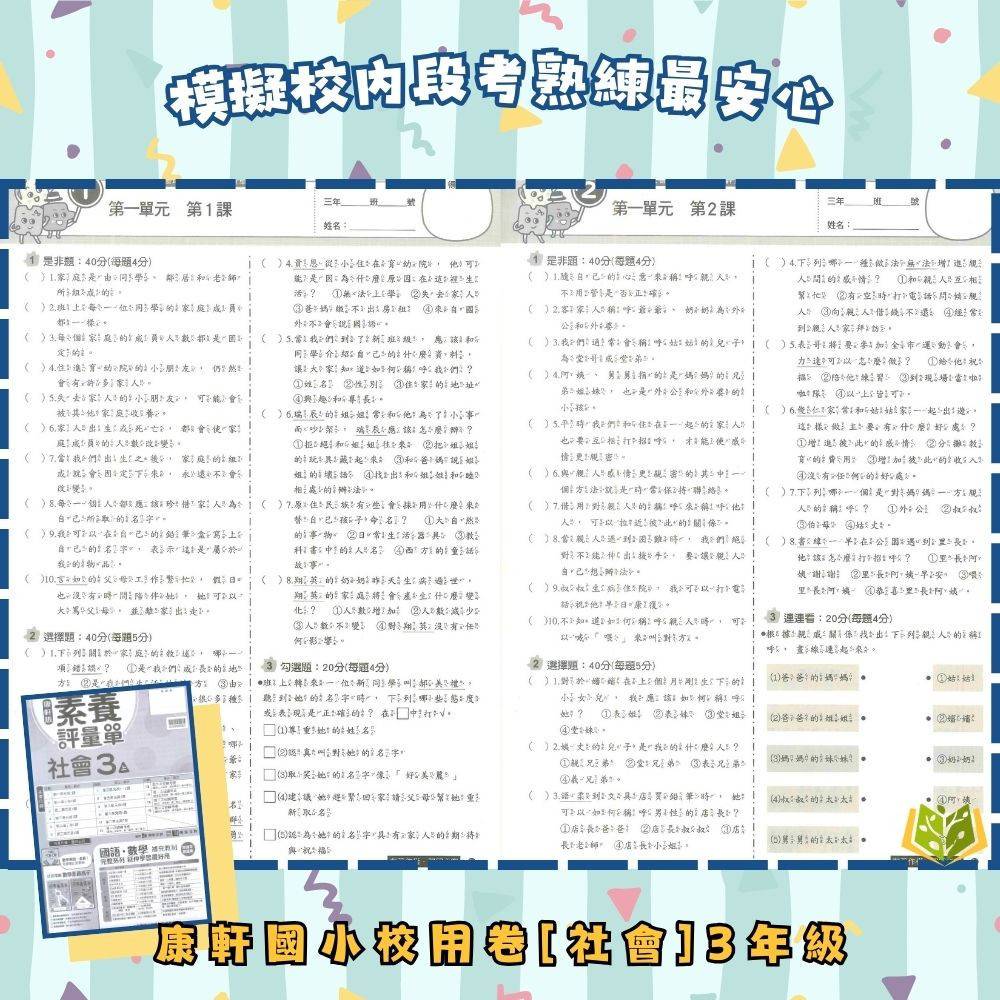 📗測驗卷:可撕一張一張,模擬學校試卷,適合考前複習,訓練學生掌握考試時間