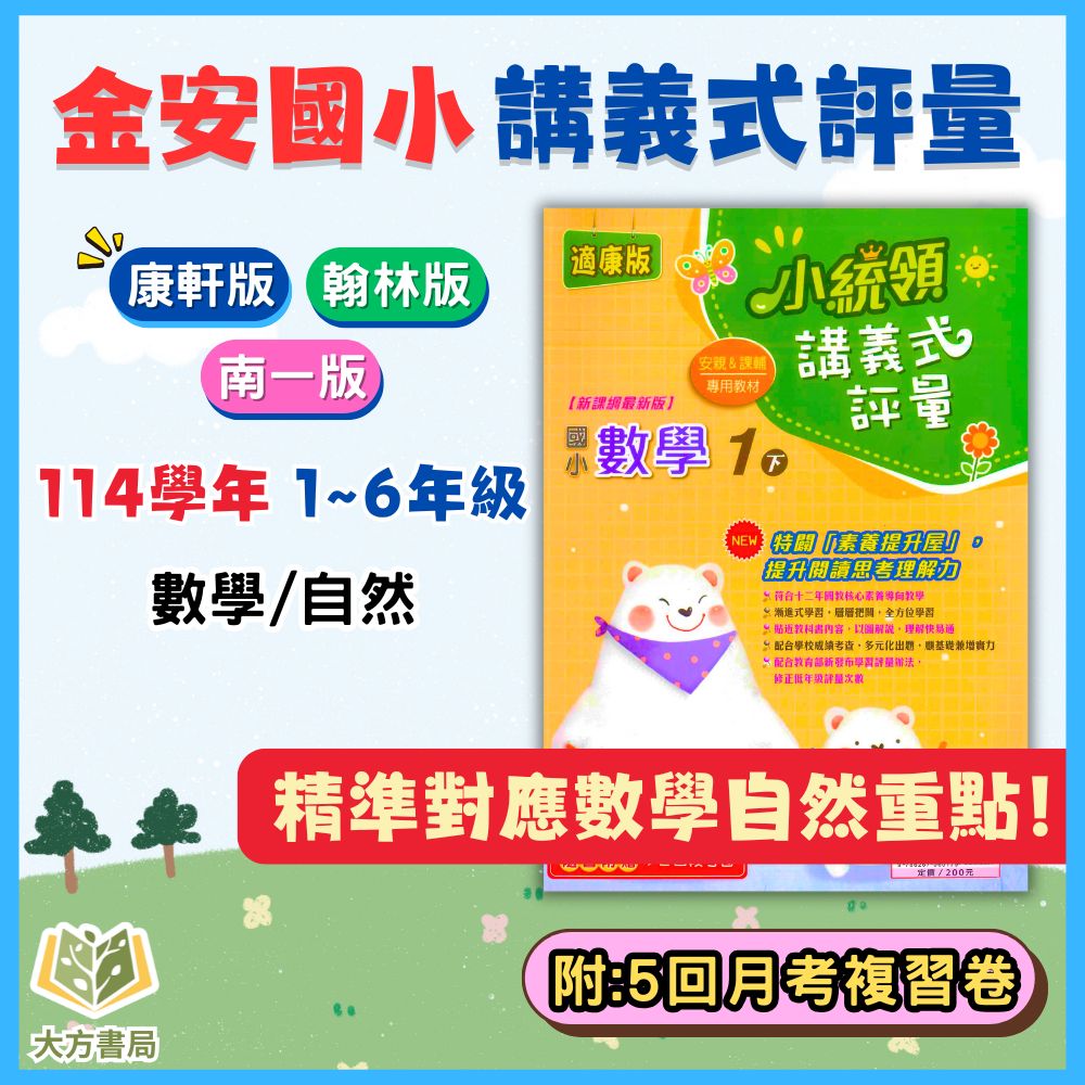 金安國小【講義式評量】國小評量 適用康軒/翰林/南一 114下 國小1~6年級 數學評量 自然評量|附解答+5回月考複習卷|