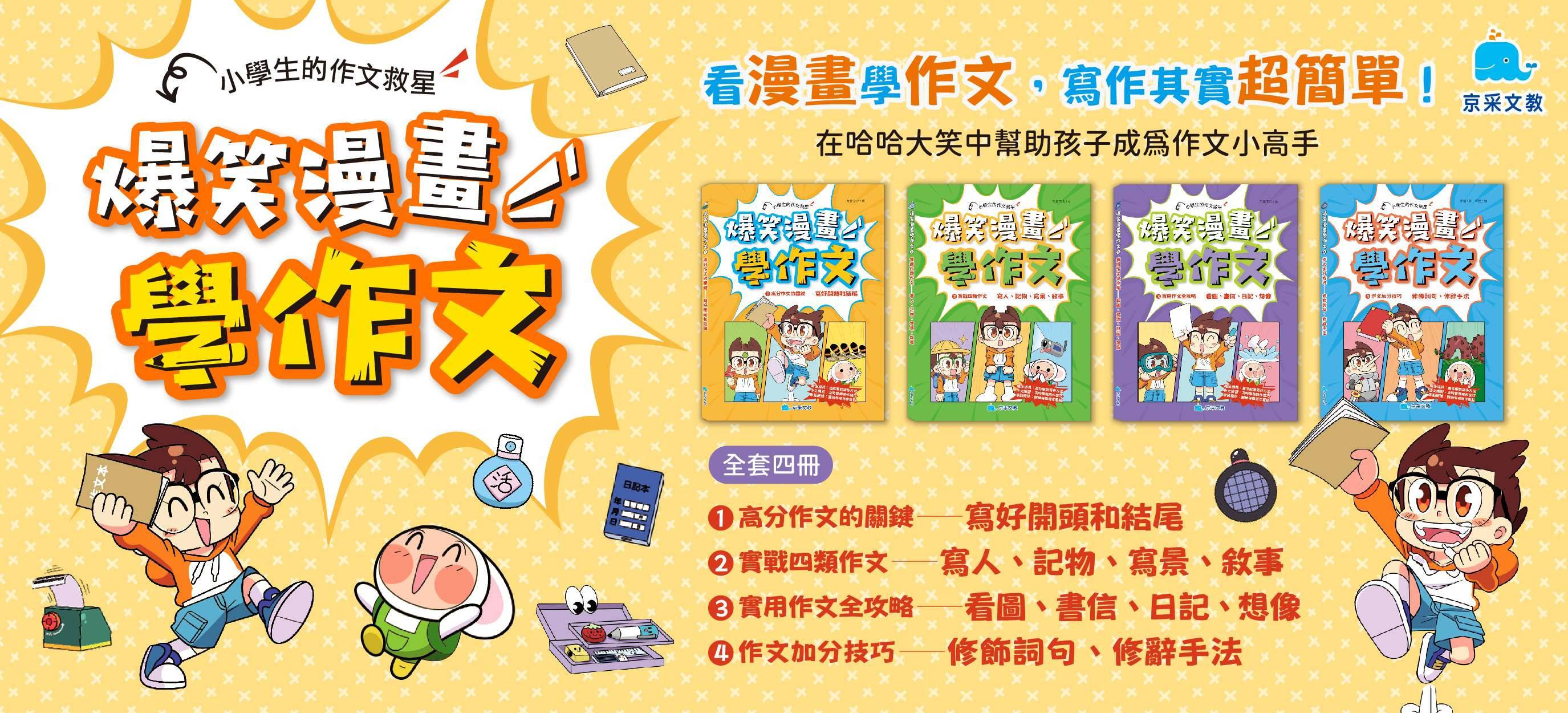 京采【爆笑漫畫學作文】|8歲以上適讀| 高分作文的關鍵/實戰四類作文/食用作文全攻略/作文加分技巧