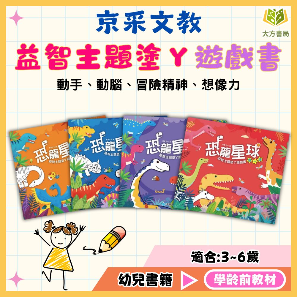 京采幼兒 恐龍星球【益智主題塗ㄚ遊戲書】1~4冊 找一找/數一數/迷宮/連一連【學齡前教材】
