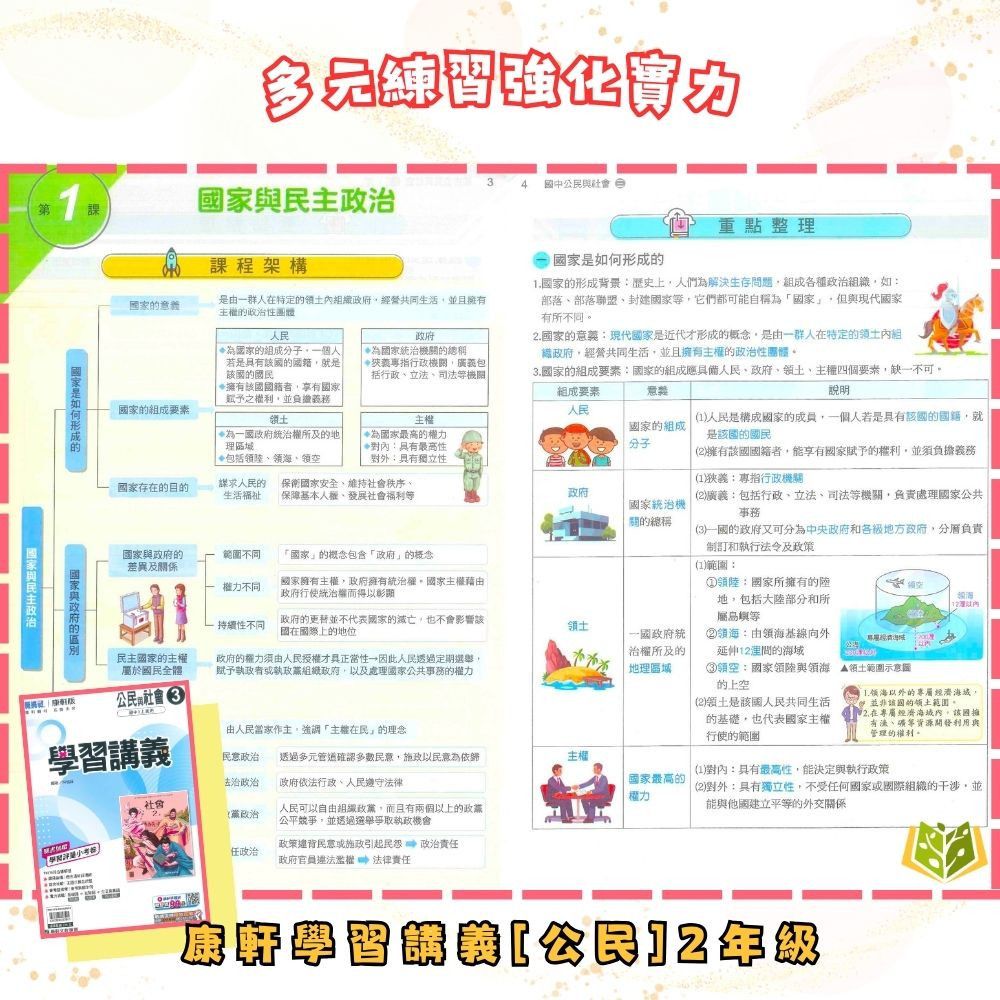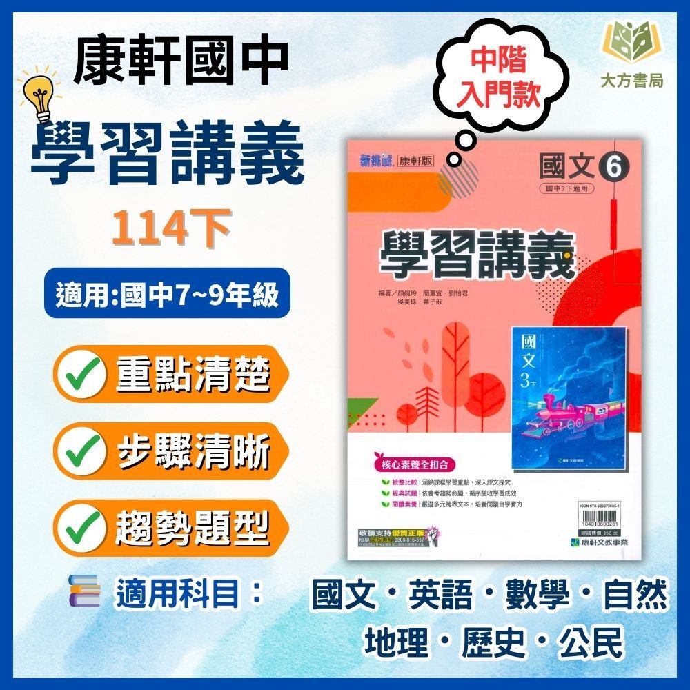 康軒國中【學習講義】標準講義 114下 國中7~9年級|國文/英語 數學/自然/歷史/地理/公民|附解答