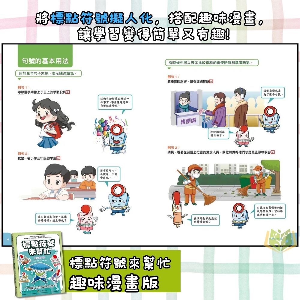 ✔ 趣味漫畫引導:擬人化標點符號,學習不枯燥