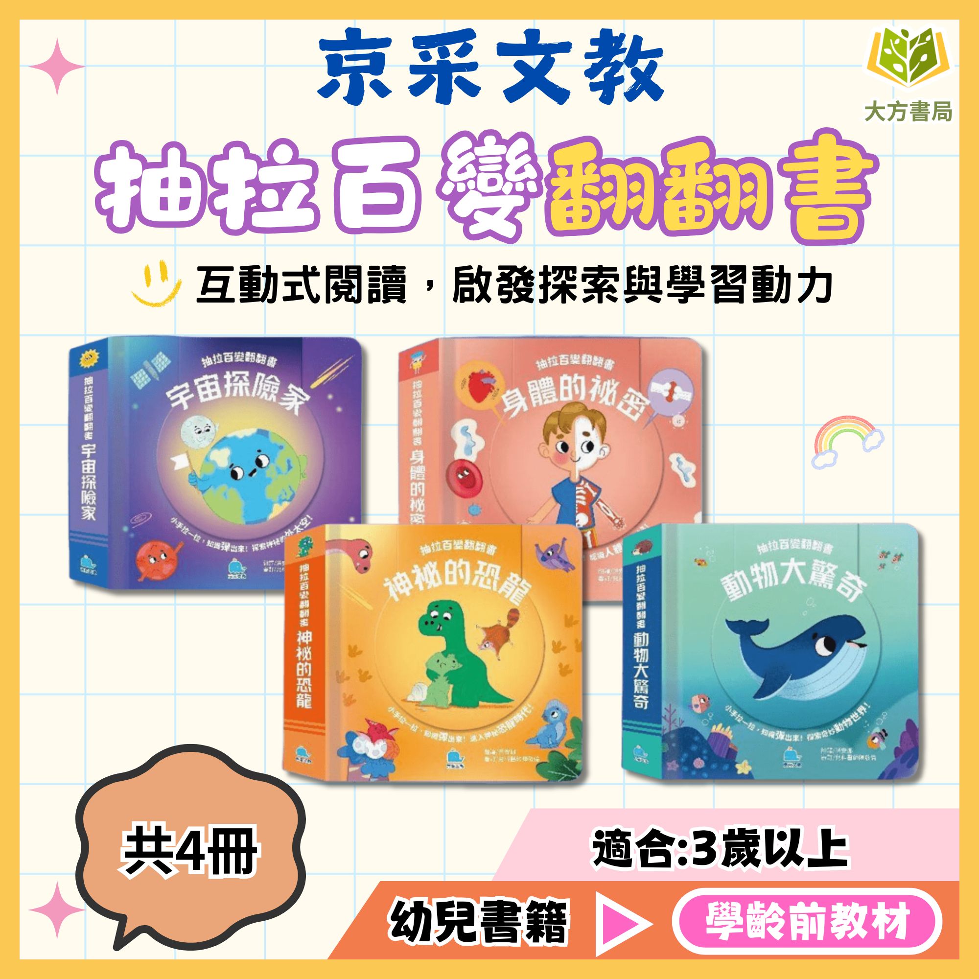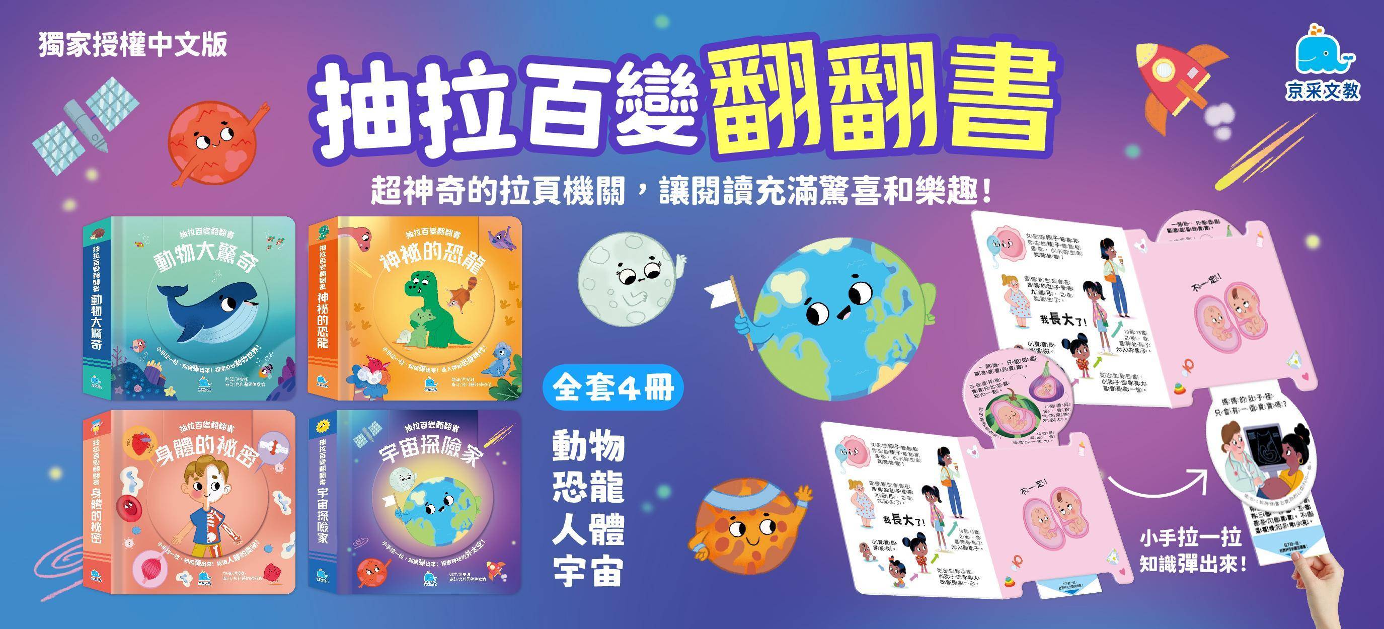 京采幼兒【抽拉百變翻翻書】1~4冊 動物大驚奇/神秘的恐龍/身體的秘密/宇宙探險家|適用3歲以上|【學齡前教材】