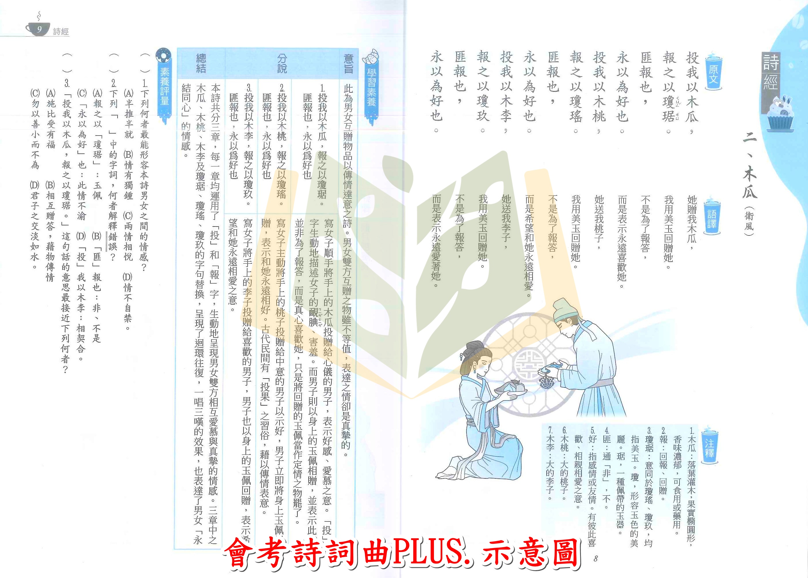 🟡選詩經、古詩、樂府詩、絕句、律詩、元曲等韻文, 練習更多元。