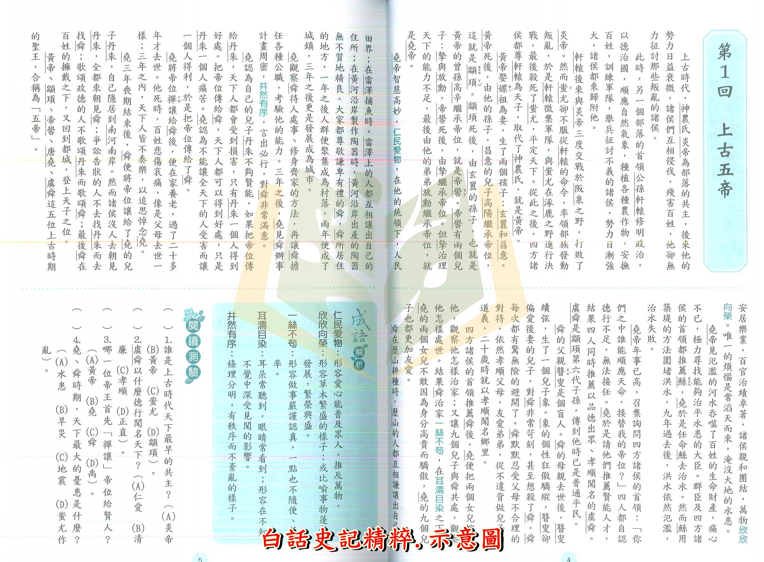 🟡《白話史記精粹》全書共六十回,每回根據《史記》原文,擷取菁華內容,用淺顯易懂的白話文敘述故事大綱,適合國中學生閱讀學習。