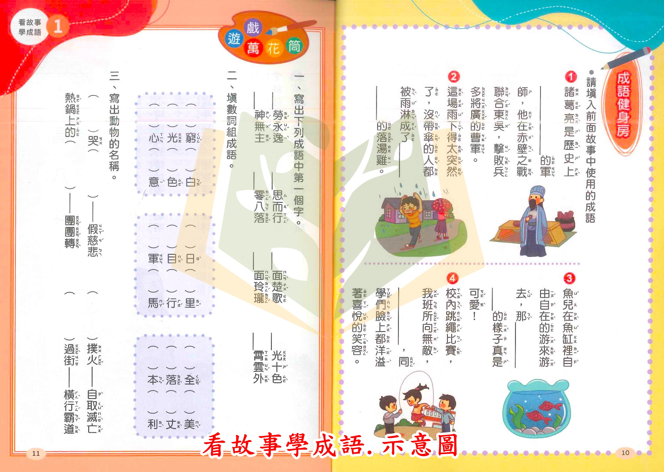 插圖輔助理解成語情境,閱讀輕鬆,孩子自主翻閱